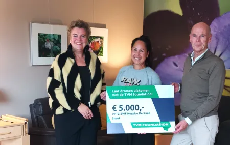 De TVM foundation doneert € 5.000 aan de Stichting Vrijwilligers Palliatieve Terminale Zorg Zuidwest-Friesland (VPTZ-ZWF) voor de uitbreiding van Hospice De Kime in Sneek.